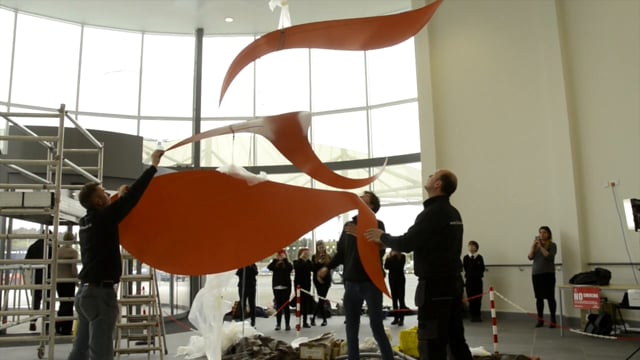 The first Dovetailing installation took place in June 2021 and was an immersive experience combining film, music and mobile sculpture. Beginning with a tree, to the selection of the wood, to the instrument maker and the music, Dovetailing responded to how notes are drawn out of silence. Each visitor made their own way through the space, creating movement, silhouettes and shadows.
